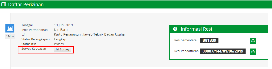 - Kemudian untuk melakukan survey kepuasan klik tombol "Isi Survey"